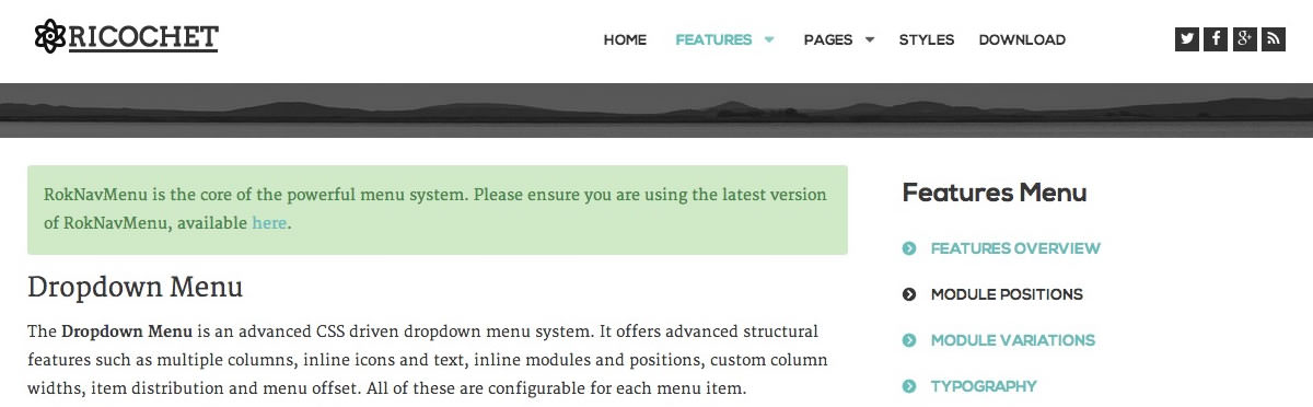 RokNavMenu is the core of the powerful menu system. Please ensure you are using the latest version of RokNavMenu, available here.